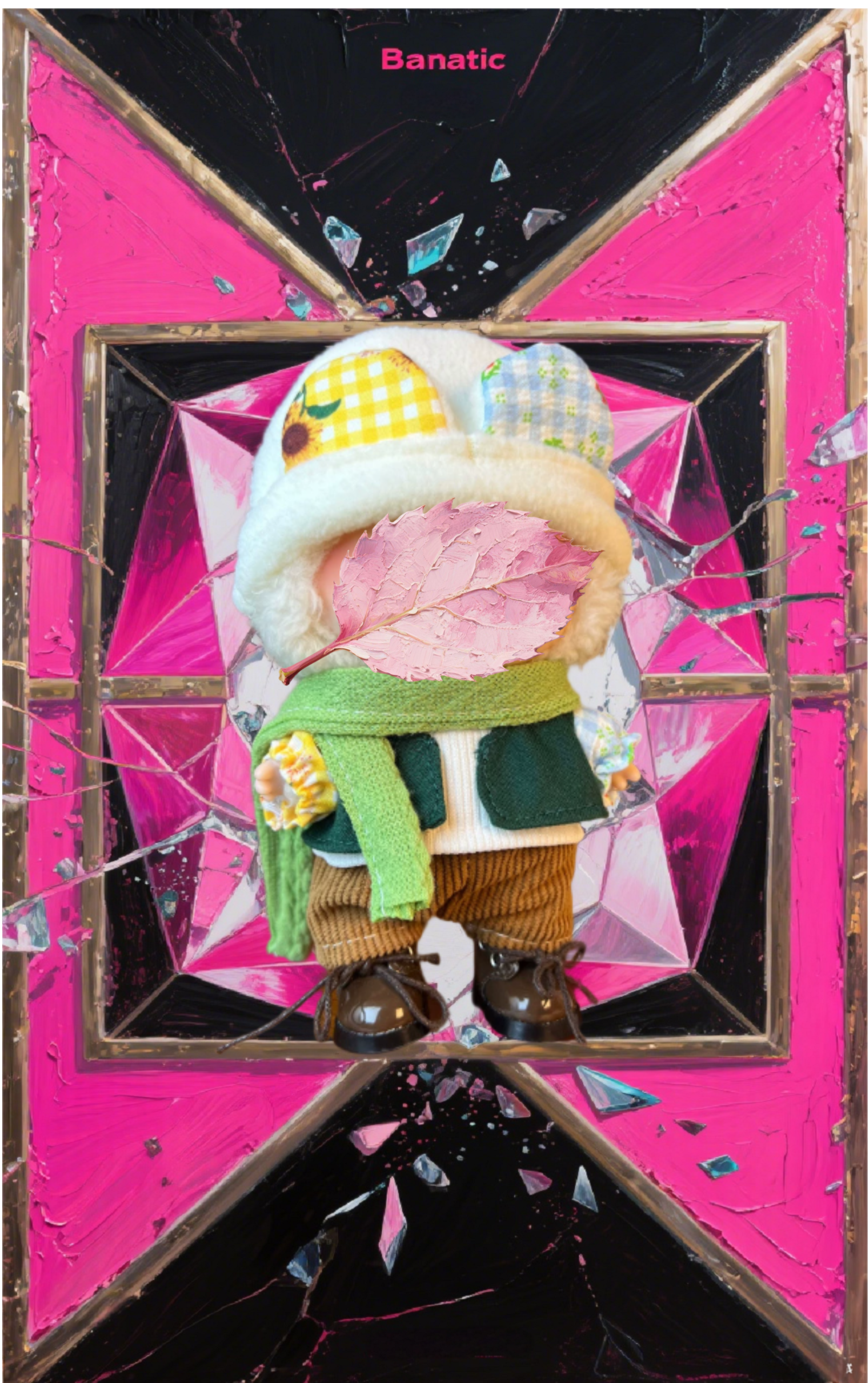 The plush white hat is decorated with yellow and blue checks, and the green scarf is wrapped in the warmth of the forest! Green and white top × brown pants collide with childlike fun, Labubu becomes the lost forest primary school principal~