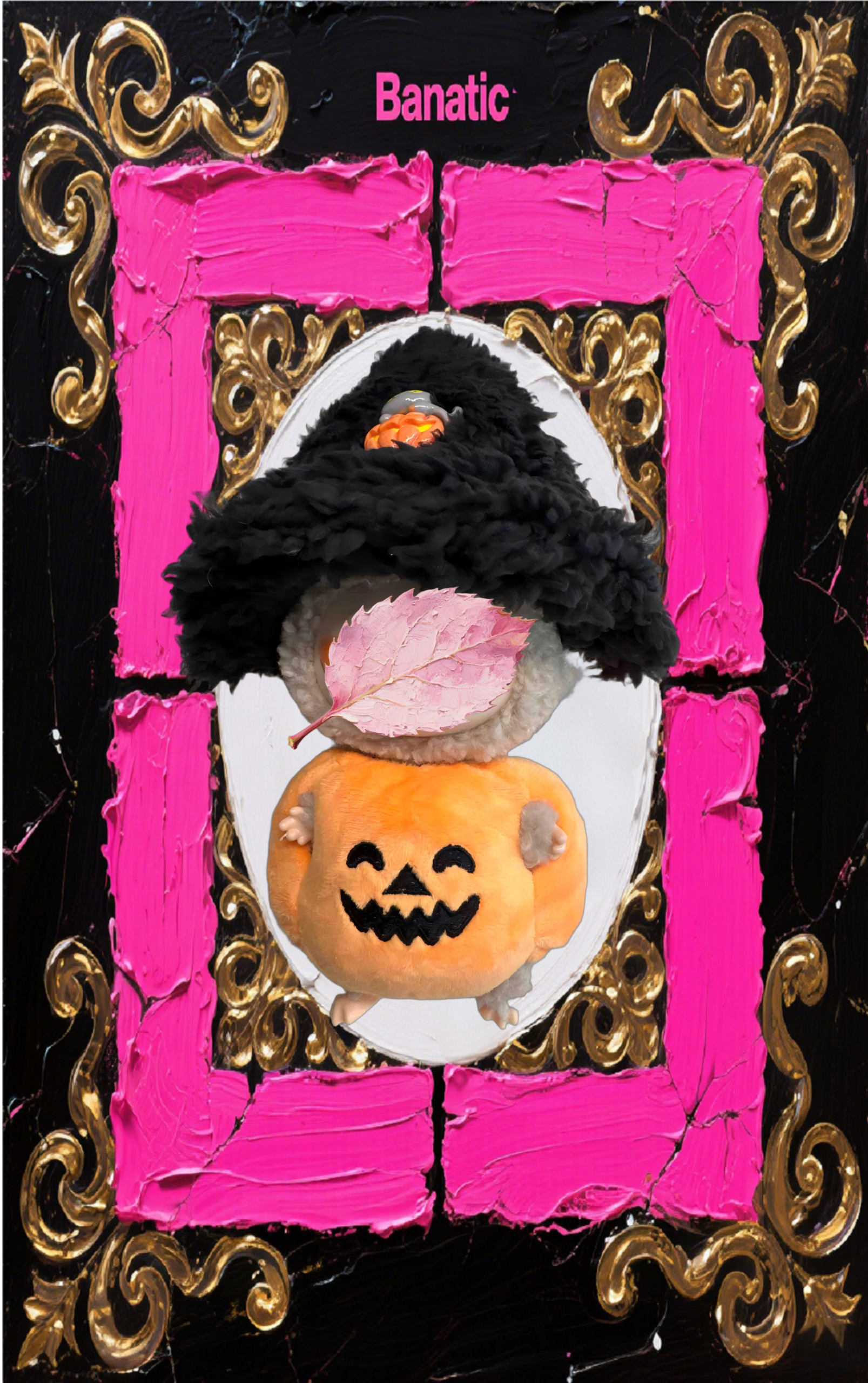 Cute pumpkin costume printed with classic grimace, plush wizard hat hides small ideas! Pin the playful pink leaf decoration, and let Labubu turn into a mysterious mischievous little devil in one second~